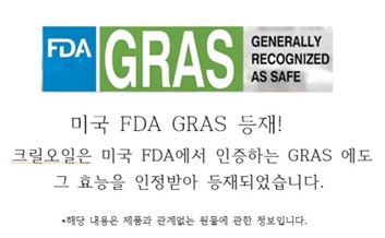 GRAS란 FDA(미국 식약처)에서 안전성을 인정하는 물질에 부여하는 최상위 등급으로 엄격한 검증 절차를 거쳐 안전성이 확보된 원료에만 부여하는 만큼 미국은 물론 전 세계적으로도 인정 받고 있습니다.