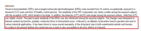 뇌파학임상신경학회지에 따르면 헥산을 용매로 쓰는 기름추출 공장의 근로자들을 살펴본 결과,